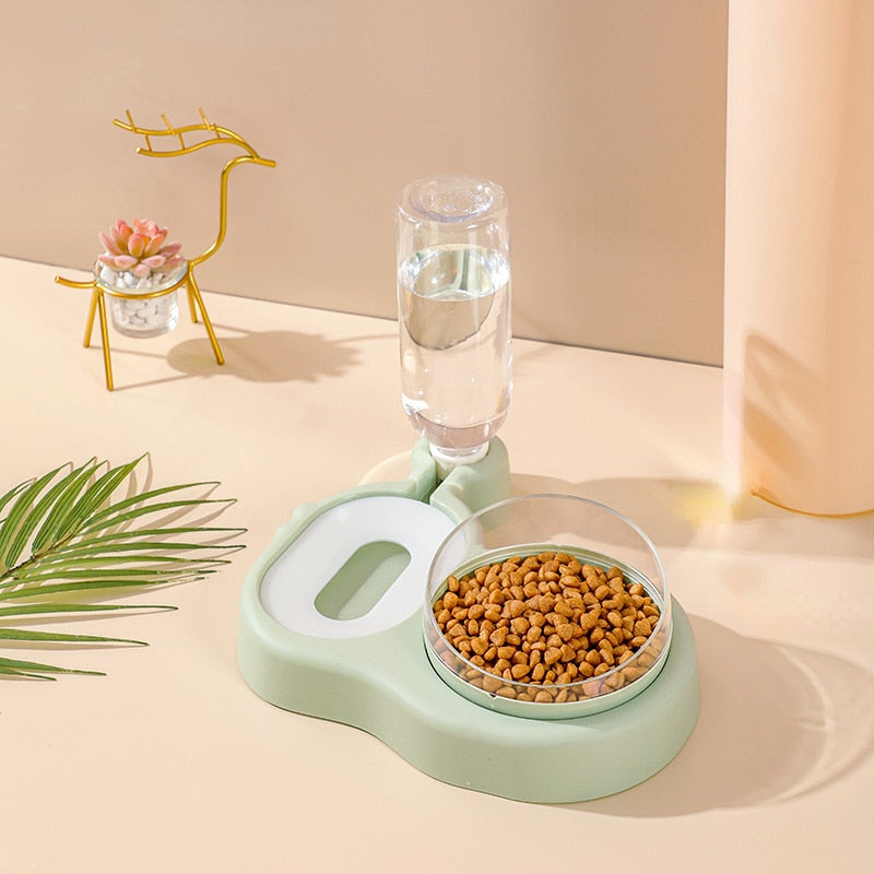 Automatic water dispenser with food bow:2 in 1 feeder bowl. food bowl with automatic water bottle. It will refill the water into the dish automatically and keep the water clean whether you at home or not.